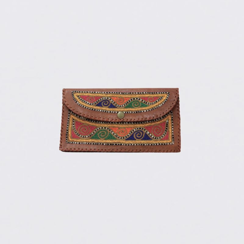Kashida Lifafa Leather Clutch Wave Design Purse